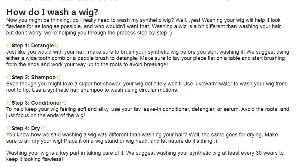Maintain your wig's beauty with gentle care: wash with cool water and mild shampoo, air dry on a wig stand, and use heat styling tools on low settings. With proper care, your wig will maintain its stunning appearance wear after wear.