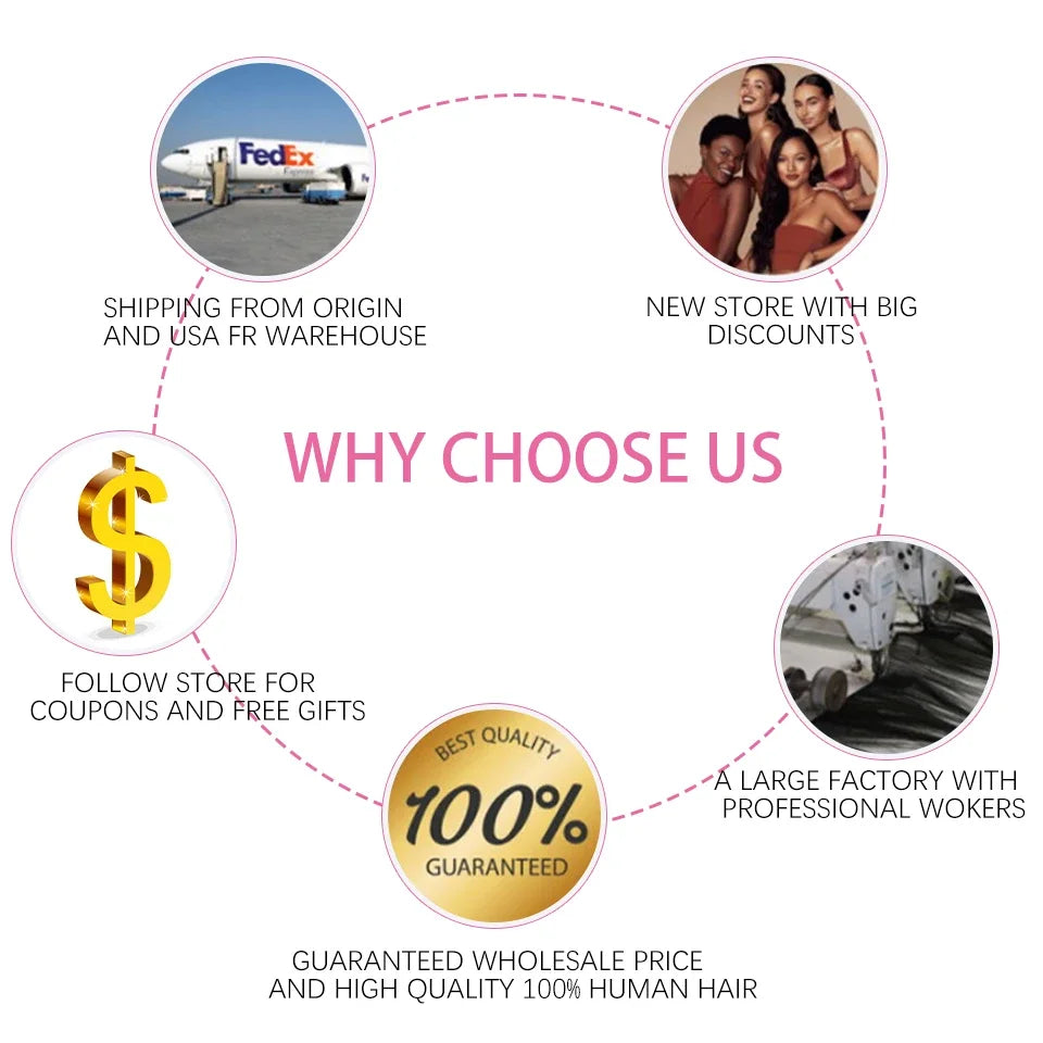 - Hair Grade: Premium Remy Hair (cuticles aligned)